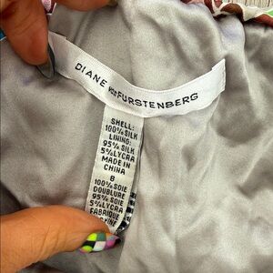 Chic strapless silk blouse by Diane Von Furstenberg. Soft and stylish. Beading - some is coming apart - see photo.
