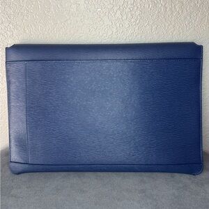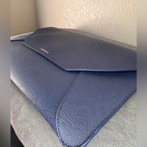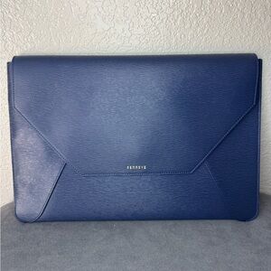Senreve Navy Leather Laptop Pouch Portfolio Clutch Made in Italy