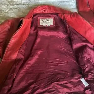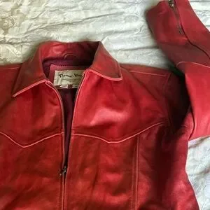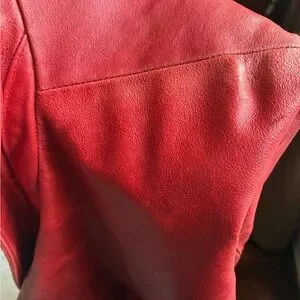 PIONEER Wear beautiful red leather jacket. Classic design with quality assurance. Motorcycle jacket with adjustable loops on the side. P2P 21in. Some faint mark, and discoloration, but overall in nice shape. Rich leather touch. Just conditioned for a new owner. Sits above waist. See pics for more details.
