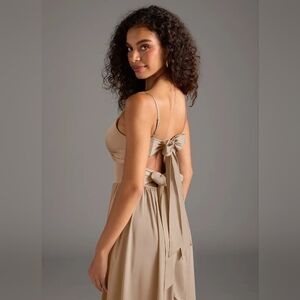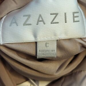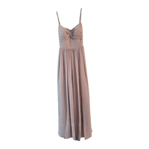 Azazie ZEYA Taupe A-Line Pleated Stretch Satin Maxi Dress - Small Custom Size
