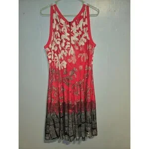 NIC+ZOE Red Floral Geometric Border Knit Sleeveless Fit Flare Dress XL