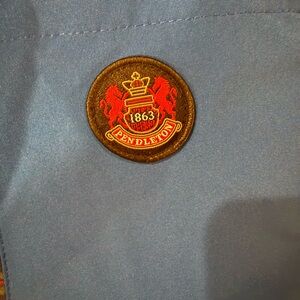 Stay cozy and stylish in this Pendleton Hooded Rain Jacket, a versatile water-resistant parka lined with Pendleton’s signature plaid. This women’s size Large jacket features a full zip with snap overlay, adjustable hood, and front flap pockets—perfect for layering in transitional weather. The blue shell is sleek and windproof, while the plaid lining adds warmth and heritage charm. Interior Pendleton crest patch adds a luxe touch.