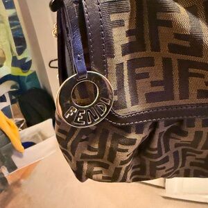 Elegant Fendi handbag with signature FF pattern. Dark brown tones enhance its classic look. Comes with dust bag only.