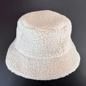 Warm and plush bucket hat. Ideal for cold weather. Adds a chic touch.