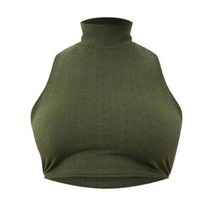 Plus Khaki Textured Jersey High Neck Racer Crop top