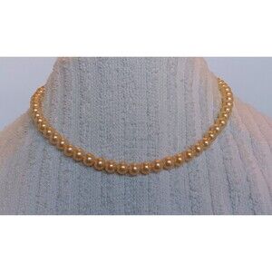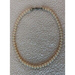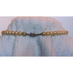 Vintage Signed Japan 6 mm Glass Pearl Necklace 16 in Silvertone Clasp