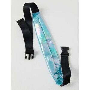 #97 NWOT Free People Slim Fold Runner Bag in Holographic Mermaid Hawaii Blue