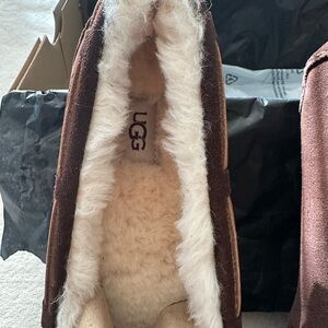 New UGG Olsen Brown Suede Moccasins with Plush Lining