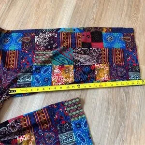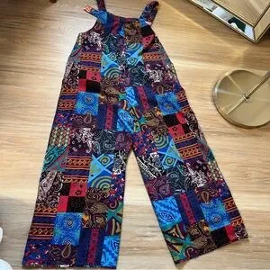tags: vintage patchwork overalls wide leg 90s boho colorful cotton festival retro womens medium