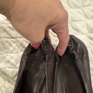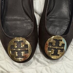 Tory Burch Dark Brown Flats with Gold Emblem