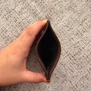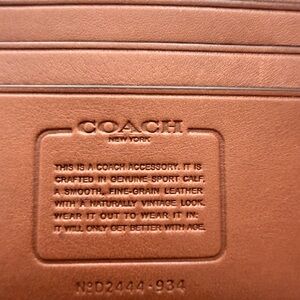 Elegant Coach card holder in tan leather. Features multiple card slots. Ideal for daily use.
