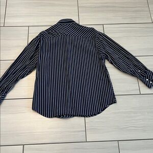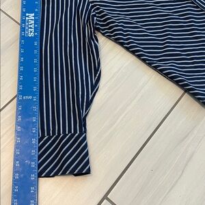 Haggar Enterprise Men’s Navy and White Striped Button Down Dress Shirt - Size L