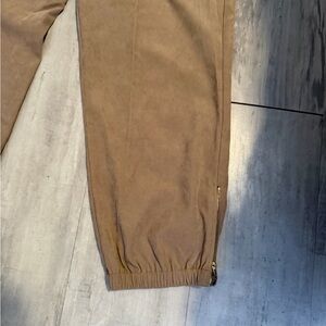 Comfortable tan jogger pants with elastic waistband and cuffs. Perfect for casual wear.