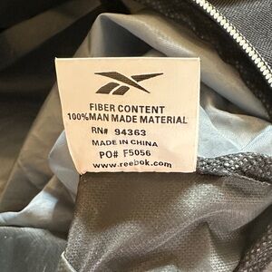 Stylish Reebok duffel bag. Ideal for gym or travel. Features durable black material. Spacious with multiple compartments.