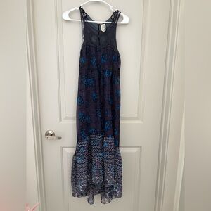 FREE PEOPLE Blue Purple Native Rose Lace Trim Hi-Lo Midi Maxi Dress Size 6