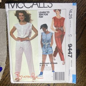VTG McCall Pattern #9447 Jumpsuit Brooke Shields Logo Iron-on Transfers Sz Small