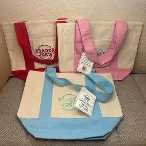 Trader Joe’s Mini Canvas Tote Bags— 2 Pastels (Pink & Blue) + 1 Red (3 total)