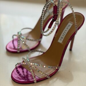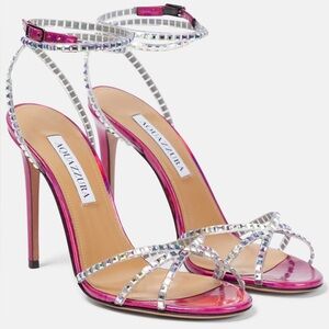 AQUAZZURA Dance Plexi 105 Embellished PVC/ iridescent leather sandals Size 38.5