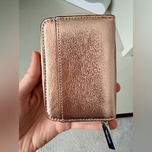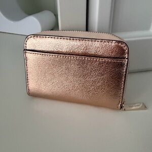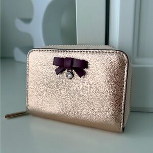 KATE SPADE Small Zip Around Card Case Wallet Other Wrapping Party Glitter NEW In new condition with no tags never used hairline scratches on zipper pull Made of Leather 4.3" h x 2.9" w x 0.9" d refined grain leather ksny metal pinmount logo lining: two way spade jacquard 6 credit cards slots center zip coin compartment dual gussets exterior slip pocket on back of wallet zip closure. Smoke and pet free home.