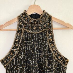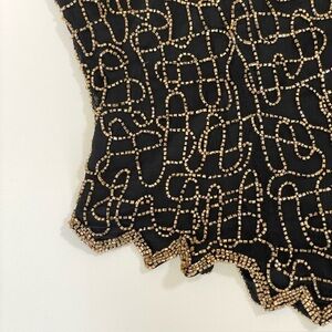 Vintage Papell Boutique Evening Beaded Silk Art Deco High Neck Top Black Gold MP
