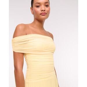 Abercrombie & Fitch Giselle Drop-Waist Mesh Maxi Dress Ruched Off The Shoulder