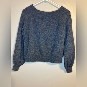 H&M Gray Off Shoulder Fold Over Neck Sweater Wool Alpaca Blend Size S