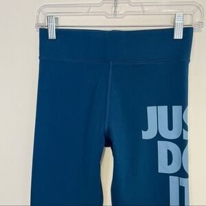 Nike blue two tone just do it spell out athletic compression leggings Womens size small good used condition. Please see all photos for details