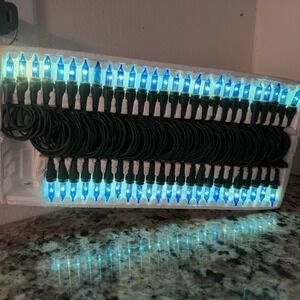 Vintage Holiday Home 50 Mini Blue Christmas Light Set 25ft TESTED