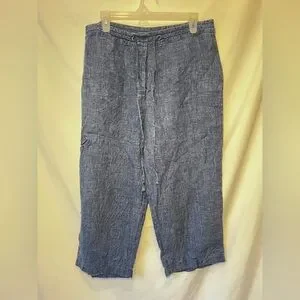 Time to rotate my closet! These are so comfortable! Linen wide leg crop pants. In great condition! They have a tie waist that also has buttons. Two back pockets that button closed.