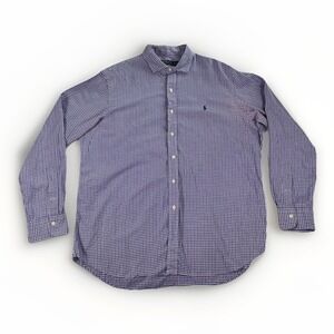 Polo Ralph Lauren Poplin Shirt Mens XL Purple Blue Round Hem Cotton Button Up