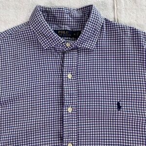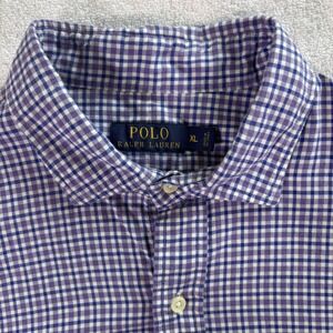 Polo Ralph Lauren Poplin Shirt Mens XL Purple Blue Round Hem Cotton Button UpDescription