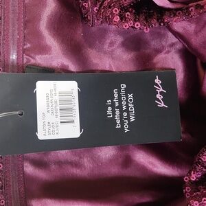 New Wildfox Alston Sequin Cropped Bow Front Strapless Top Size XL Dark Purple
