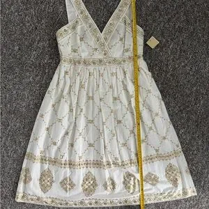 Michael Kors Cream and Gold Midi Dress womens size 8