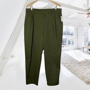 Upgrade your wardrobe with these stylish and comfortable GAP women's army green trousers, brand new with tags! Designed in a flattering high-waisted cut with front pleats for a polished look, these pants are made from a soft and stretchy blend of 97% cotton and 3% spandex — perfect for all-day comfort and easy movement. Size 18 with a tapered leg that pairs effortlessly with anything from casual tees to dressy blouses. Whether you're headed to work, brunch, or running errands, these pants are a versatile must-have!