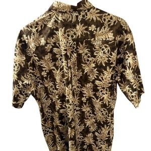 Hilo Hattie Hawaiian Shirt Size M Brown Tropical Beach Luau BBQ Coconut Buttons