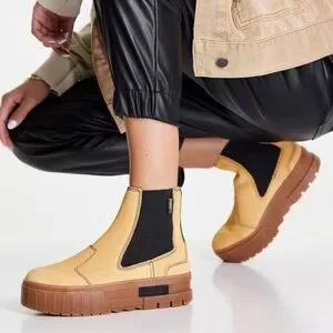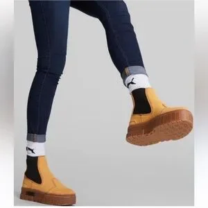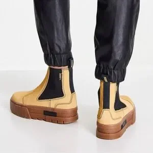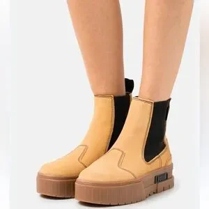 Puma Women’s Mayze Platform Chelsea Suede Tan Gum Sole Casual Boots Size 8.5 New