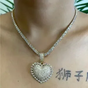 This stunning necklace features a dazzling heart pendant encrusted with shimmering stones. The elegant gold chain adds a touch of luxury, making it perfect for any occasion.