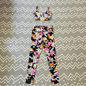 Adidas 2 piece Lycra pants shirt stretch yoga floral camo graphic running