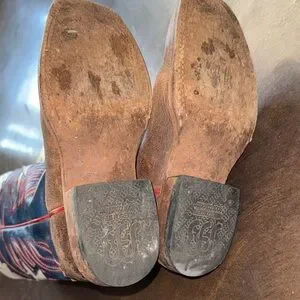 Stylish cowboy boots featuring a patriotic star design. Perfect for adding flair to any outfit. Note that wear from wearing during normal riding. Still has a lot of life left.