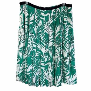 Elegant Talbots Pleated Tropical Leaf Print Skirt Green White 16