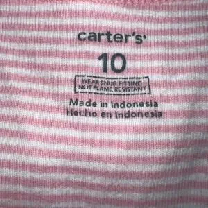 Carters Girls Pajama Shirt Top Long Sleeve Pullover Owl Patch Pink White Size 10