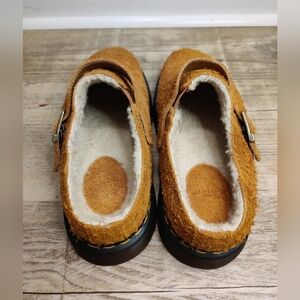 Dr. Martens Isham Faux Shearling Lined Suede Slingback Mules in Pecan Brown. New without tags/box