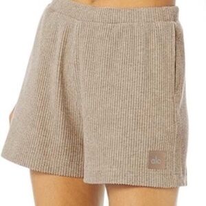 Alo Yoga Muse Shorts Ribbed Knit Light Tan Workout Athletic Lounge Gym Medium