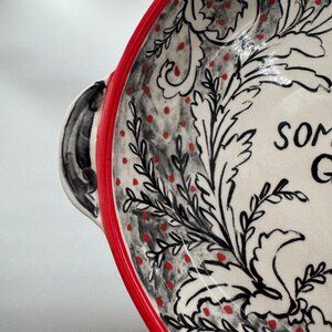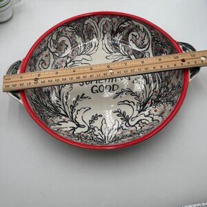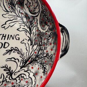Molly Hatch Anthropologie Red Black Swirl White Serving Dish Bowl Something Good