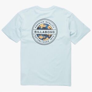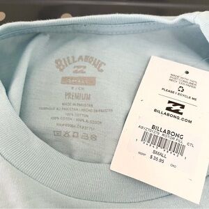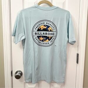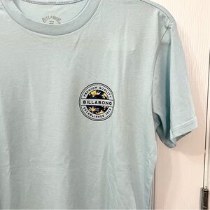 PacSun billabong light blue short sleeve graphic t shirt. Small logo on front large on back. Mens size small. New with tags condition. Tiny hole on back near neckline. Top was delivered that way, but ended up being too small for my son. Please see all photos for details