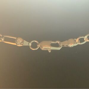 This is a Brand New, signed 925 silver Figaro necklace. Has a lovely shine and style with this chic necklace. It is fluid and soft. Perfect for any occasion. Wear it up or down. See measurements listed.