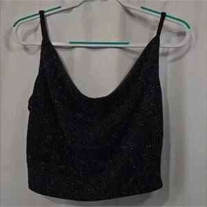 Women's White Birch brand black with multicolor glitter vintage 90s crop top in size medium.