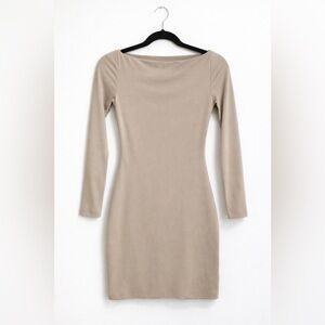 Aritzia Contour Collide Dress – Sculpt Knit Bodycon Mini Beige – Size Small