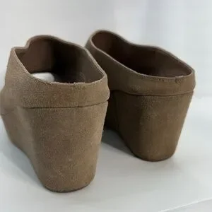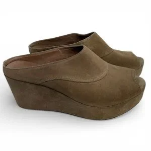 💚 Chocolat Blu Wind Tan Leather Platform Wedge Sandals, Peep Toe