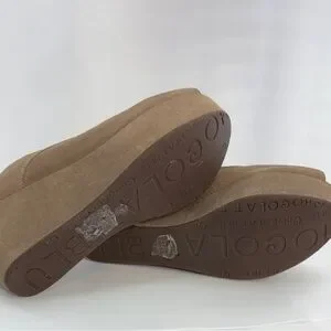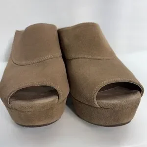 Chocolat Blu Wind Tan Leather Platform Wedge Peep Toe Sandals, Women’s Size 8